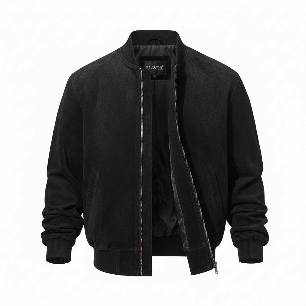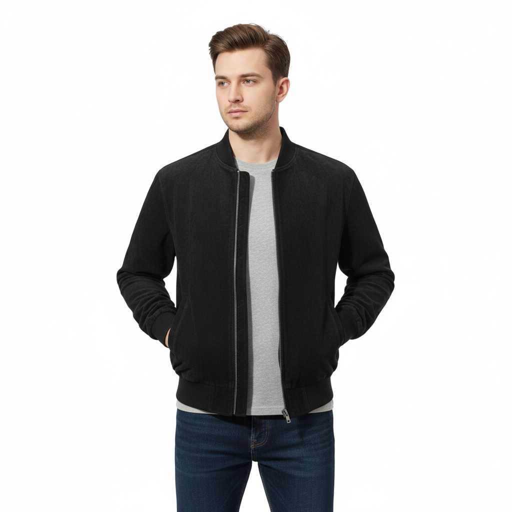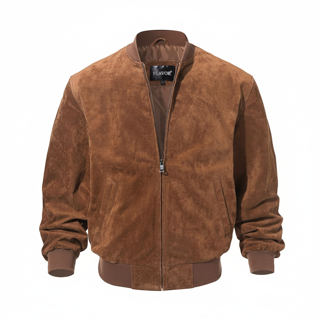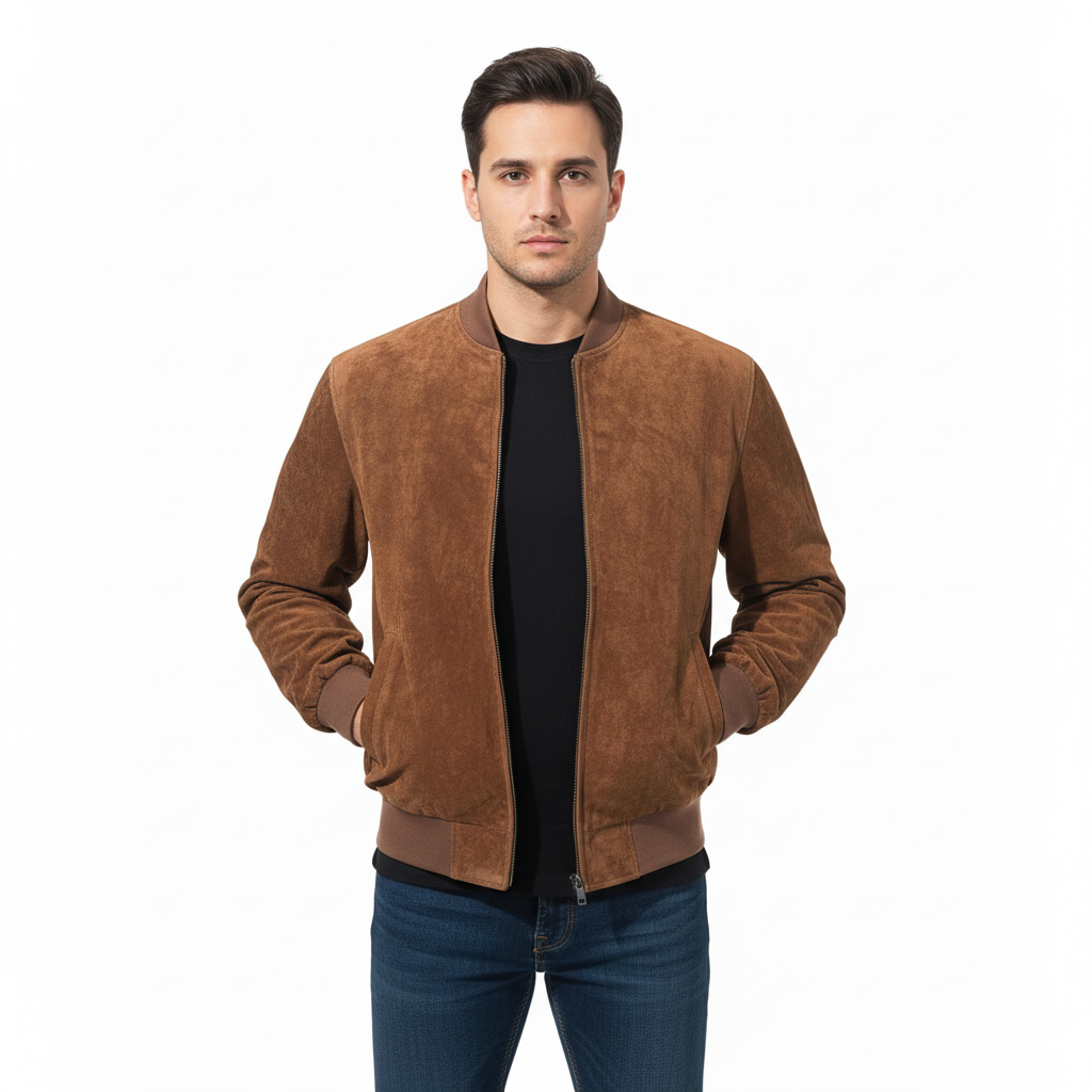 This premium bomber jacket delivers a clean, minimalist look with a refined suede finish. Soft to the touch yet durable enough for daily use, it brings together classic street style and polished tailoring.